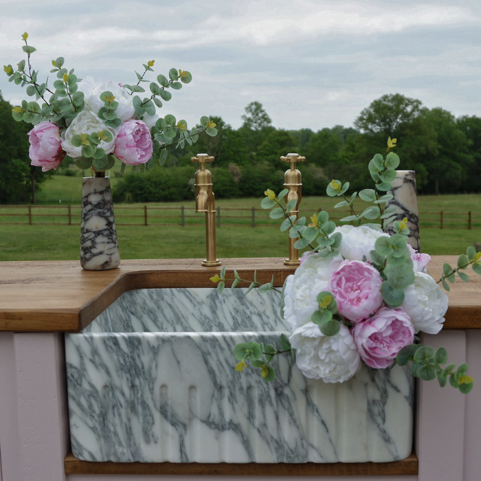 Fluted Marble Butler Farmhouse Sink - Arabescato