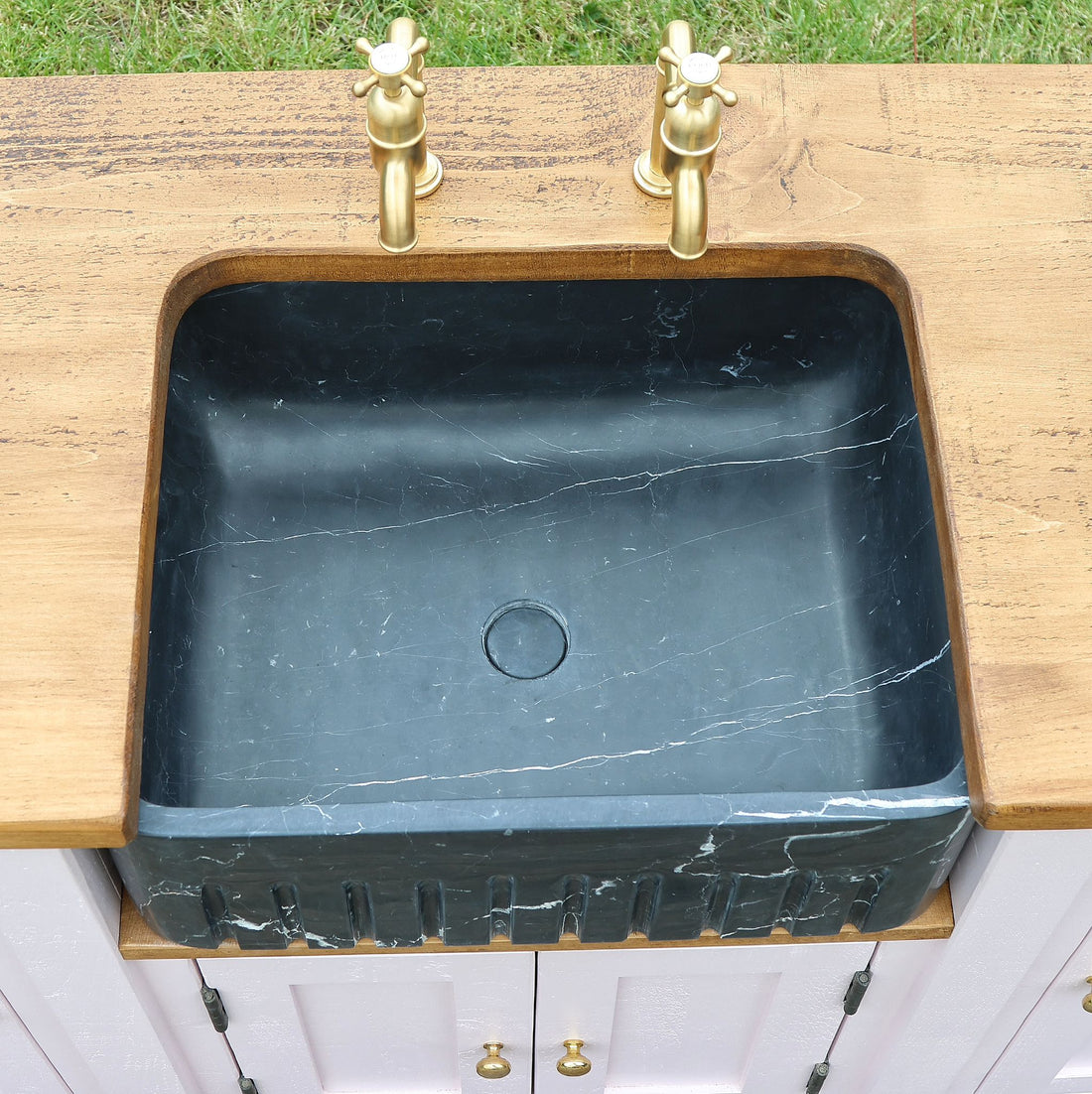 Fluted Marble Butler Farmhouse Sink - Nero Marquina