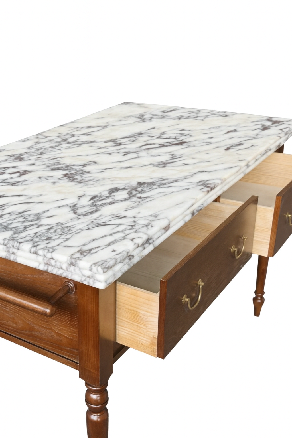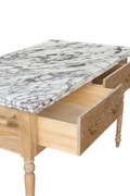 The island's base, a testament to enduring craftsmanship, is sculpted from solid ash with either a subtle, light or antique coco stain. Its Victorian silhouette bridges classic elegance with contemporary luxury, ensuring this piece will be a legacy you pass down for generations. More than a functional object, the Viola Kitchen Island is a work of functional art, a testament to a life lived with a deep appreciation for quality and beauty.