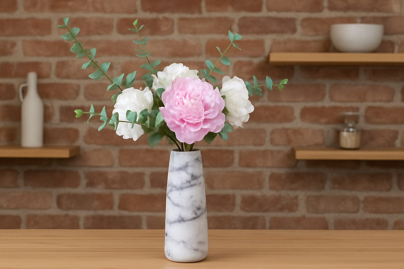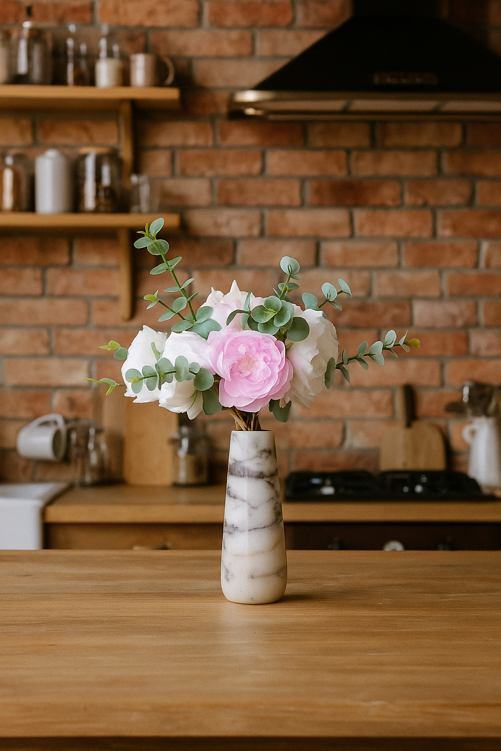 Discover an object of quiet elegance for your home. The Viola Marble Vase is a testament to the timeless beauty of natural stone, carved from a single piece of genuine Viola marble. Prized for its intricate, painterly veining, this vase presents a unique canvas of color and pattern. Standing at 20cm in height, it is a perfect accent piece—whether holding a single stem or simply serving as a sculptural object in its own right. Each piece is truly one-of-a-kind, its natural variations and signatures a mark of authenticity and the beauty of its origin.